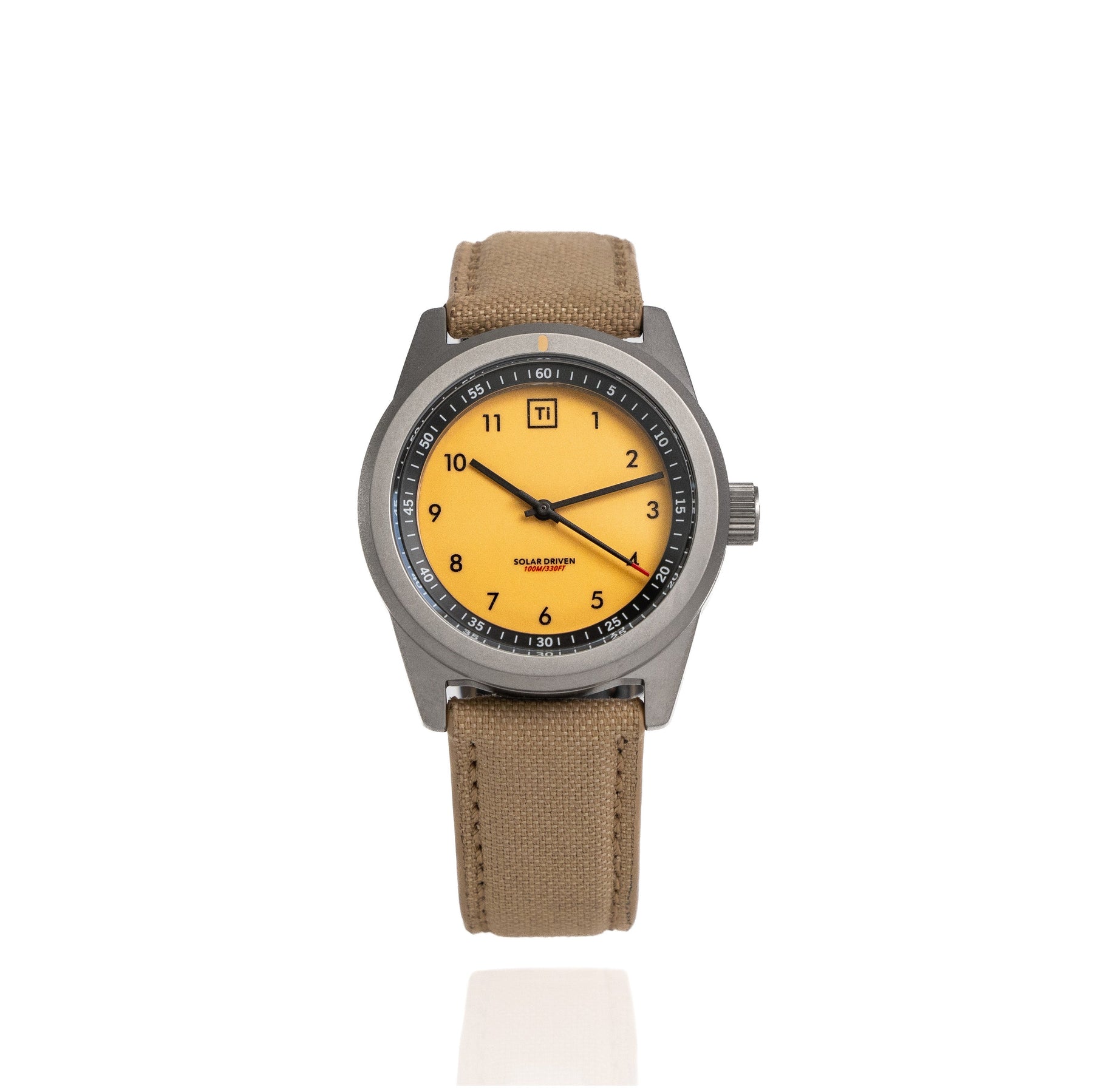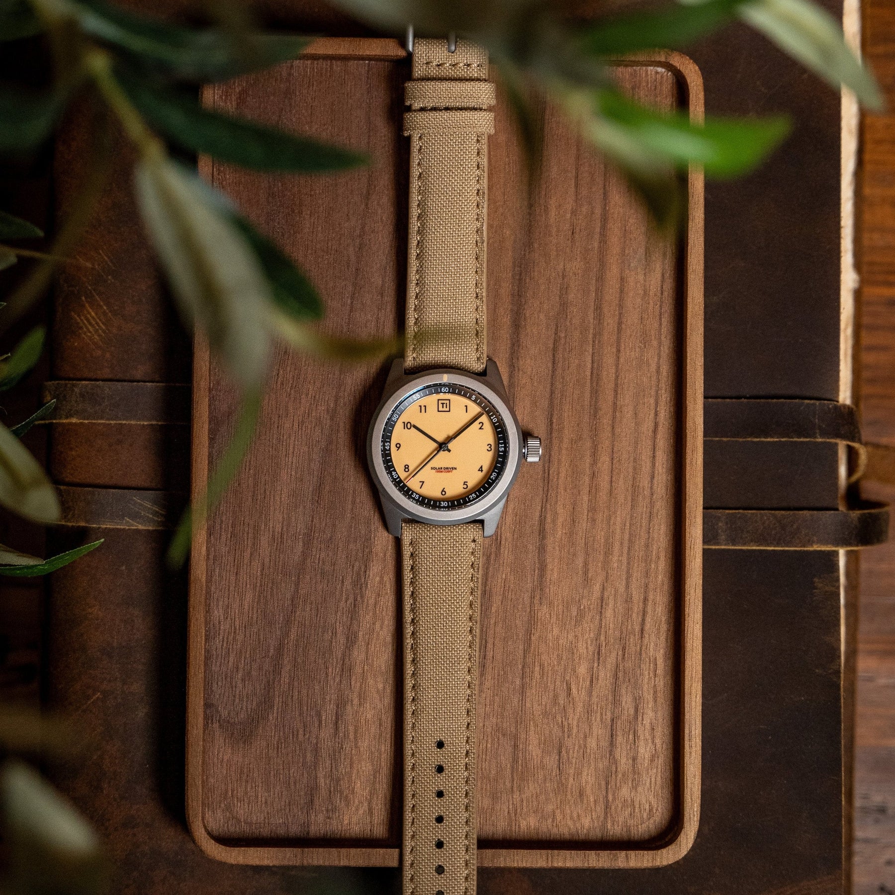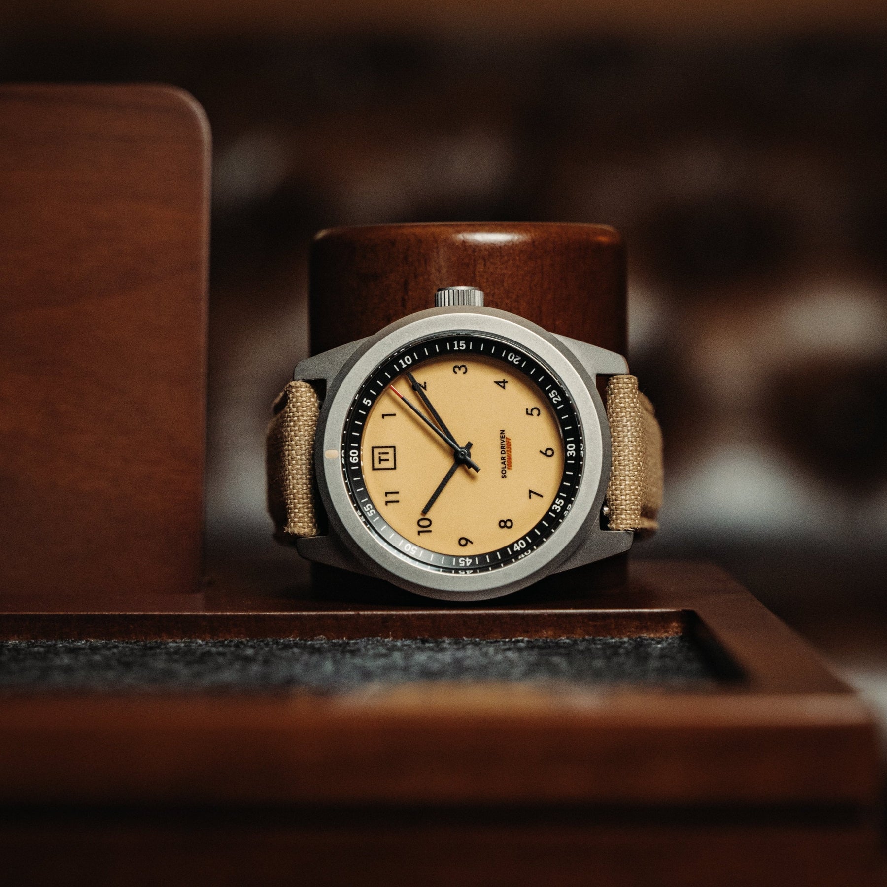 We wanted to introduce a quality timepiece that was at an attainable price point. A simple/clean design that would fit in no matter the situation, but be durable enough to stand up to all your daily tasks. Sapphire crystal covers the Miyota 2070 solar movement. A beveled chapter ring brings dimension to the face. Whether this is your first watch, or your 50th, this would be a great daily companion!