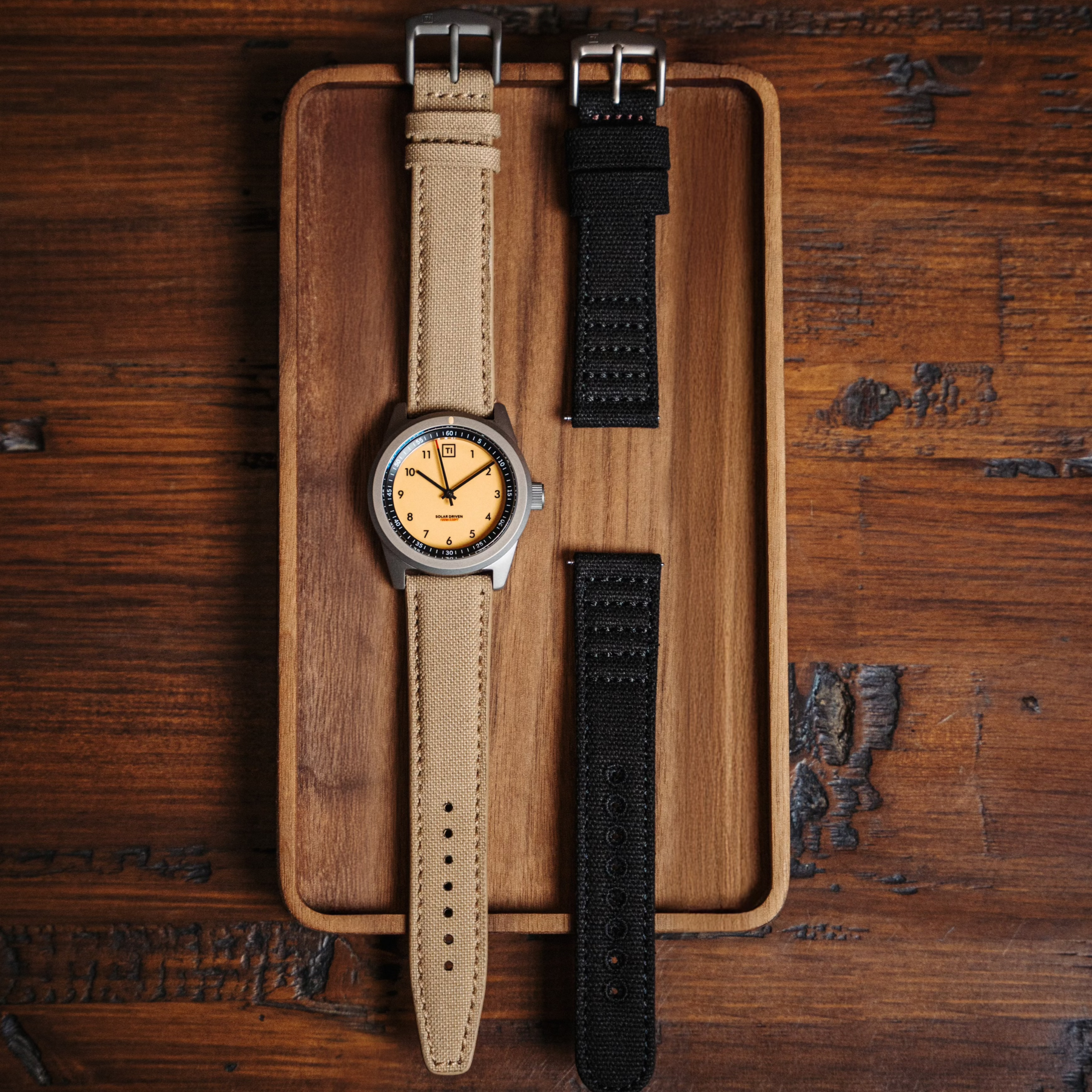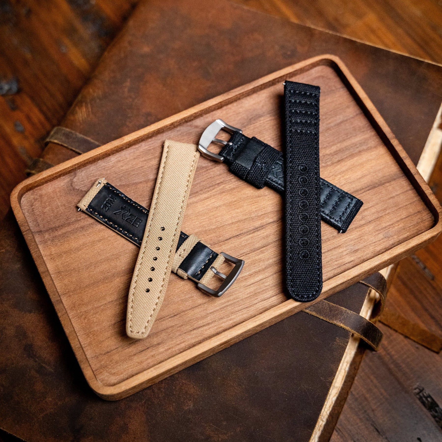 •(2) Two Piece Canvas Straps w/ Titanium Hardware (Black and Grey)