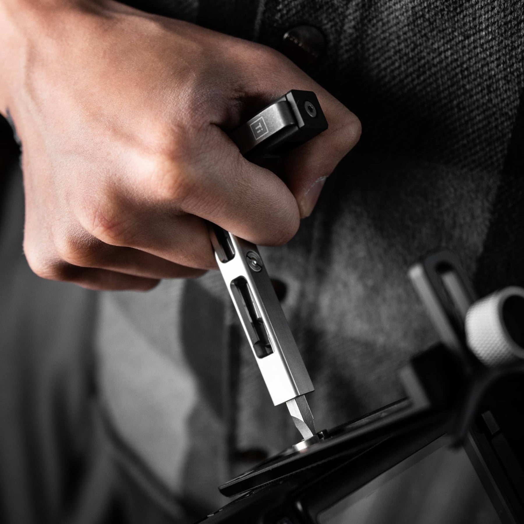 Discover the ultimate pocket-sized solution for everyday repairs. This solid titanium screwdriver offers three configurations with convenient hex bit storage, making it your go-to tool for any situation. Crafted with premium materials including rare-earth magnets and 100% metal construction, it's designed for durability and comfortable pocket carry.