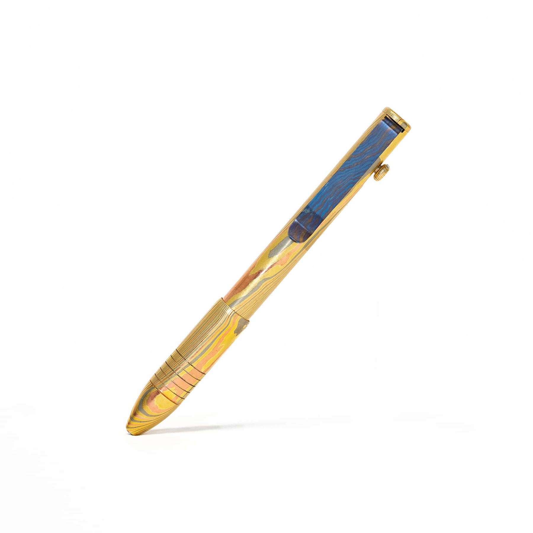 Each of these Bolt Action Pens are solid brass damascus, polished and flame treated to give unique colors and designs. No two are the same! Each pen serialized so you can pick out your perfect one.