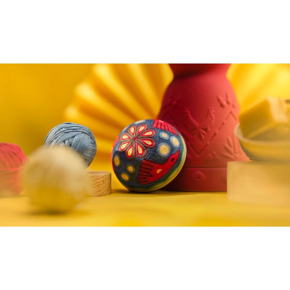 Handmade using a technique of colored yarn appliqué, the decanter’s cap represents a beautiful desert landscape of mountains and valleys overflown by bright red finches. Each piece requires over three hours of meticulous craftsmanship from our artisans.