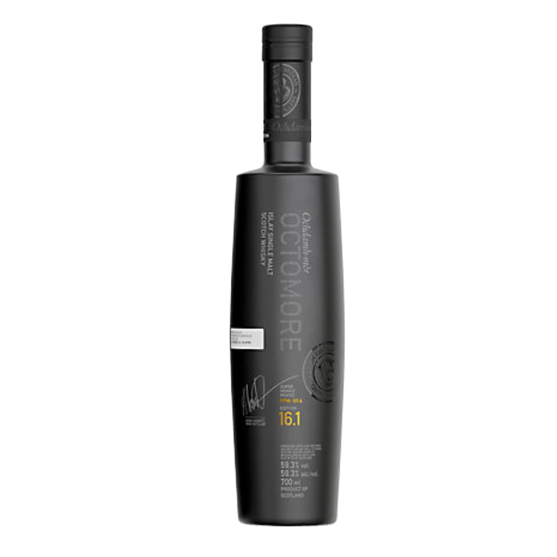 Crafted from Scottish mainland barley, variety Concerto, and bottled un-chill filtered with no color added, this whisky highlights Bruichladdich’s dedication to authenticity and craftsmanship. With an ABV of 59.3%, Octomore 16.1 is an intense, high-proof spirit made for the true connoisseur.