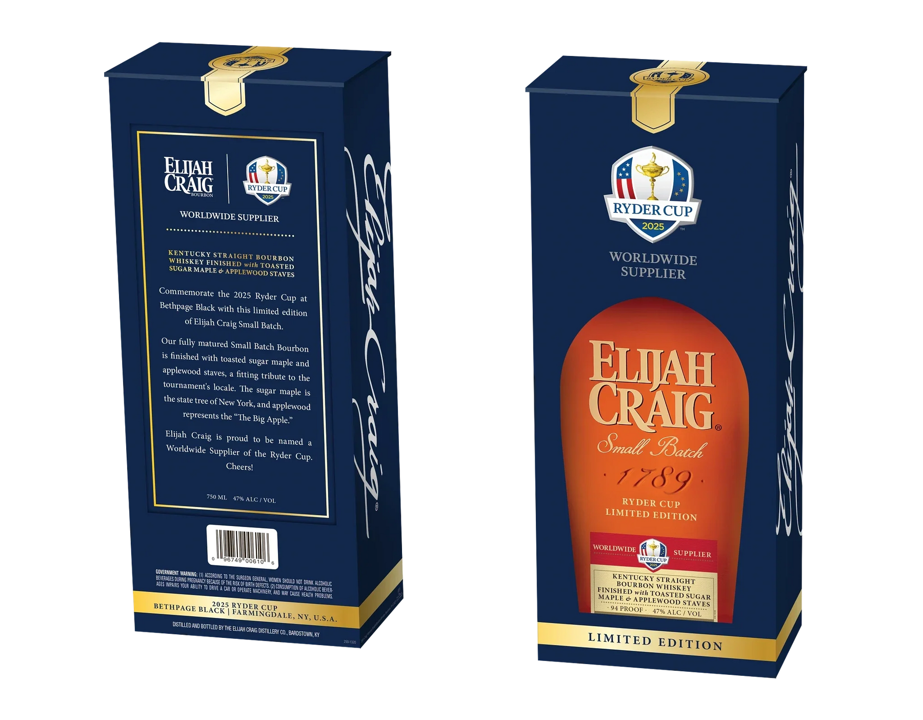 Commemorate the 2025 Ryder Cup at Bethpage Black with this limited edition of Elijah Craig Small Batch. Our fully matured Small Batch Bourbon is finished with toasted sugar maple and applewood staves, a fitting tribute to the tournament's locale. The sugar maple is the state tree of New York, and applewood represents “The Big Apple.” Elijah Craig is proud to be named a Worldwide Supplier of the Ryder Cup. Cheers!