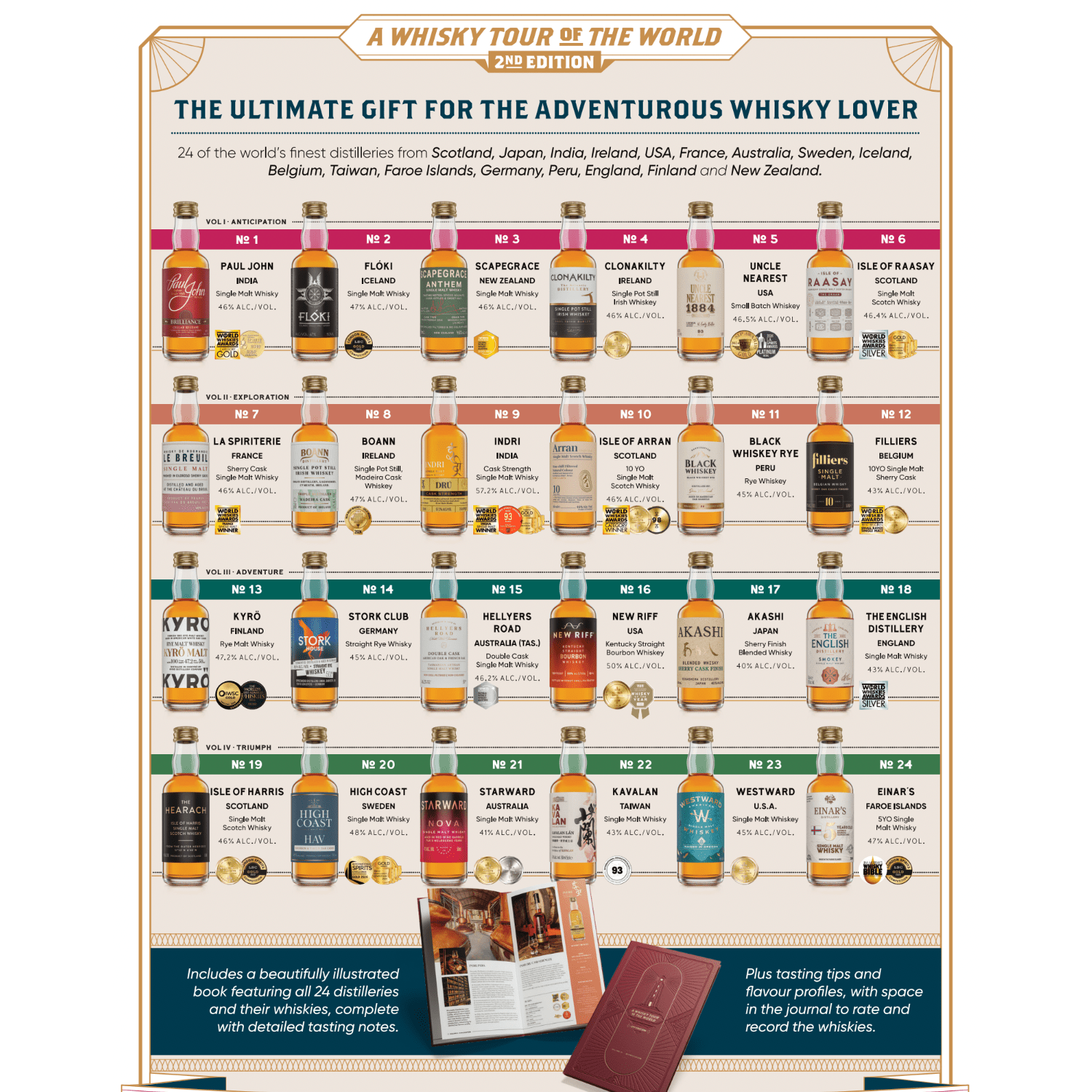 Designed as a luxury advent calendar and breaking new ground in concept and design, the Whisky Tour of the World 2nd Edition showcases some of the world’s leading whiskies from distilleries.